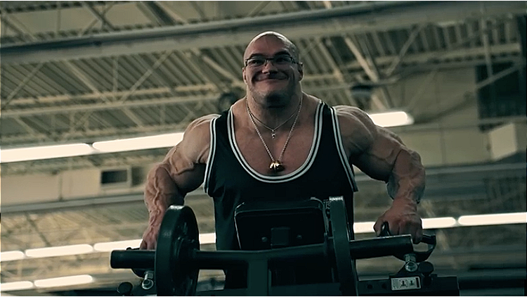 Now, Walker transitions into machine bent-over rows. He sets his feet hip-width apart and uses a semi-neutral grip. Again, the stretch and contraction guide his tempo.